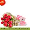 “10 Pink Roses, Teddy with Ferrero Rocher 30” has been added to your cart.