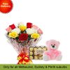 10 Mix Roses, Teddy with Ferrero Rocher 30