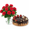 Red Carnations with Choco Strawberry Cake