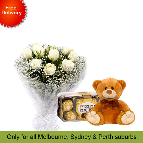 Combo of Roses and adorable Teddy Bear with Chocolates.