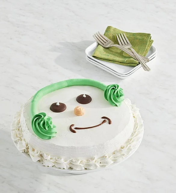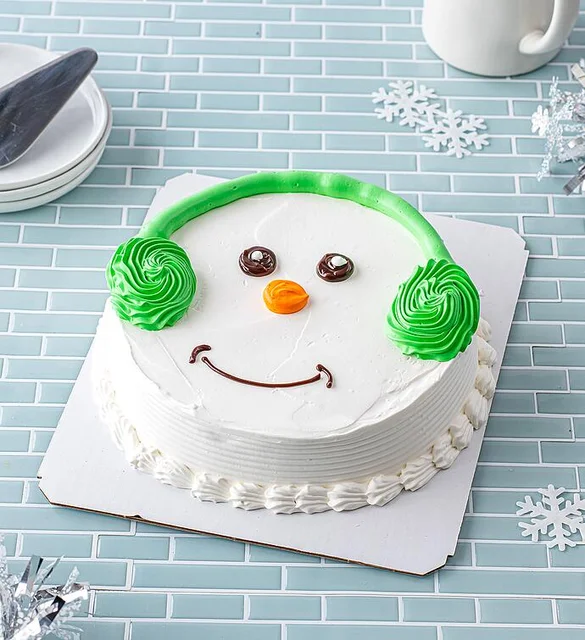 Make your celebration extra sweet with this adorable snowman ice cream cake. Creamy layers of vanilla and chocolate ice cream meet a crunchy chocolate center, all wrapped in fresh whipped frosting. A fun, festive treat that’s sure to melt hearts. Serves up to 9.
