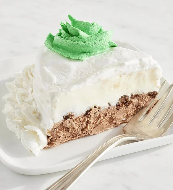 Chocolate and vanilla ice cream cake topped with whipped frosting and chocolate-flavored Crunchies