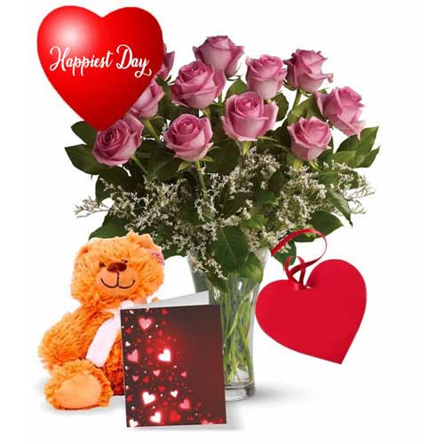Special includes 10  Premium, Long Stem Pink Roses, a cuddly Teddy Bear, and a full-size  Card.