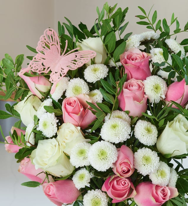 We have even included a gorgeous butterfly (style subject to change seasonally) to emphasise the beauty and theme of this bouquet. An excellent gift for any occasions including birthdays, anniversaries, and all other celebrations!