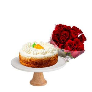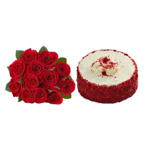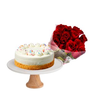 Red Roses with Vanilla Cake