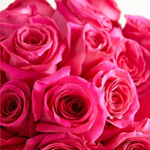 Eye-catching hot pink roses with a fun, modern vibe. Our vibrant blooms are tightly gathered into a chic dome shape with lush greenery by local florists, then hand-delivered to someone…