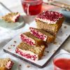 Rich all-butter raspberry-flavoured sponge topped with a creamy vanilla and white chocolate buttercream and fruity pieces of dried raspberry. A fragrant, fruity all-rounder, popular with cake lovers of all ages and perfect for family tea.