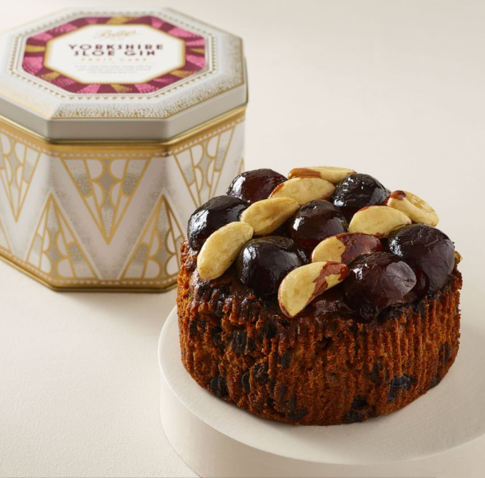 We infuse vine fruits, figs and Morello cherries in Yorkshire Sloe Gin to create this rich, dark fruit cake, presented in a Bettys keepsake tin.