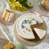 A tender, all-butter Genoese sponge sandwiched with rich vanilla buttercream and a layer of tart raspberry jam, topped with marzipan ready to be iced by our clever cake decorators – the ‘fine art’ department of Bettys. Every stem, petal and leaf is piped by hand, and so while they’re all consistently beautiful, each one has its subtle nuances – just like a calligrapher’s handwriting.